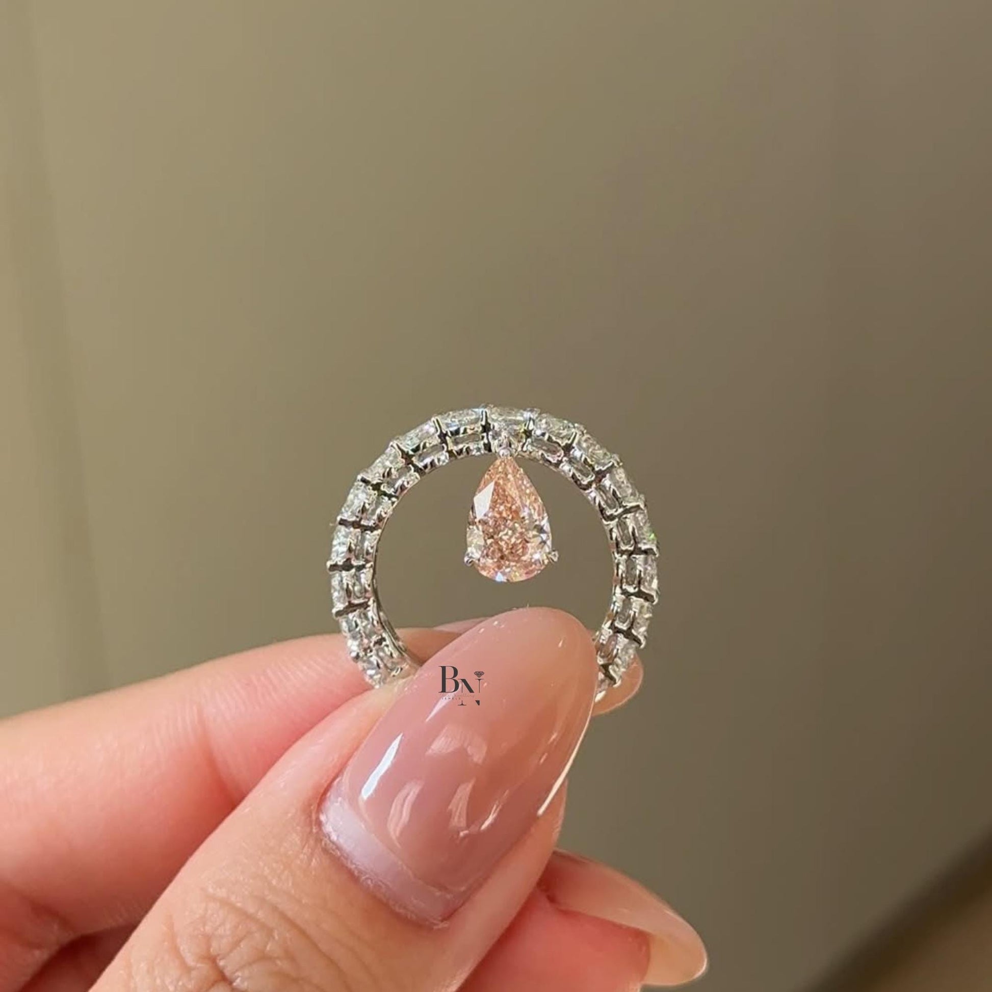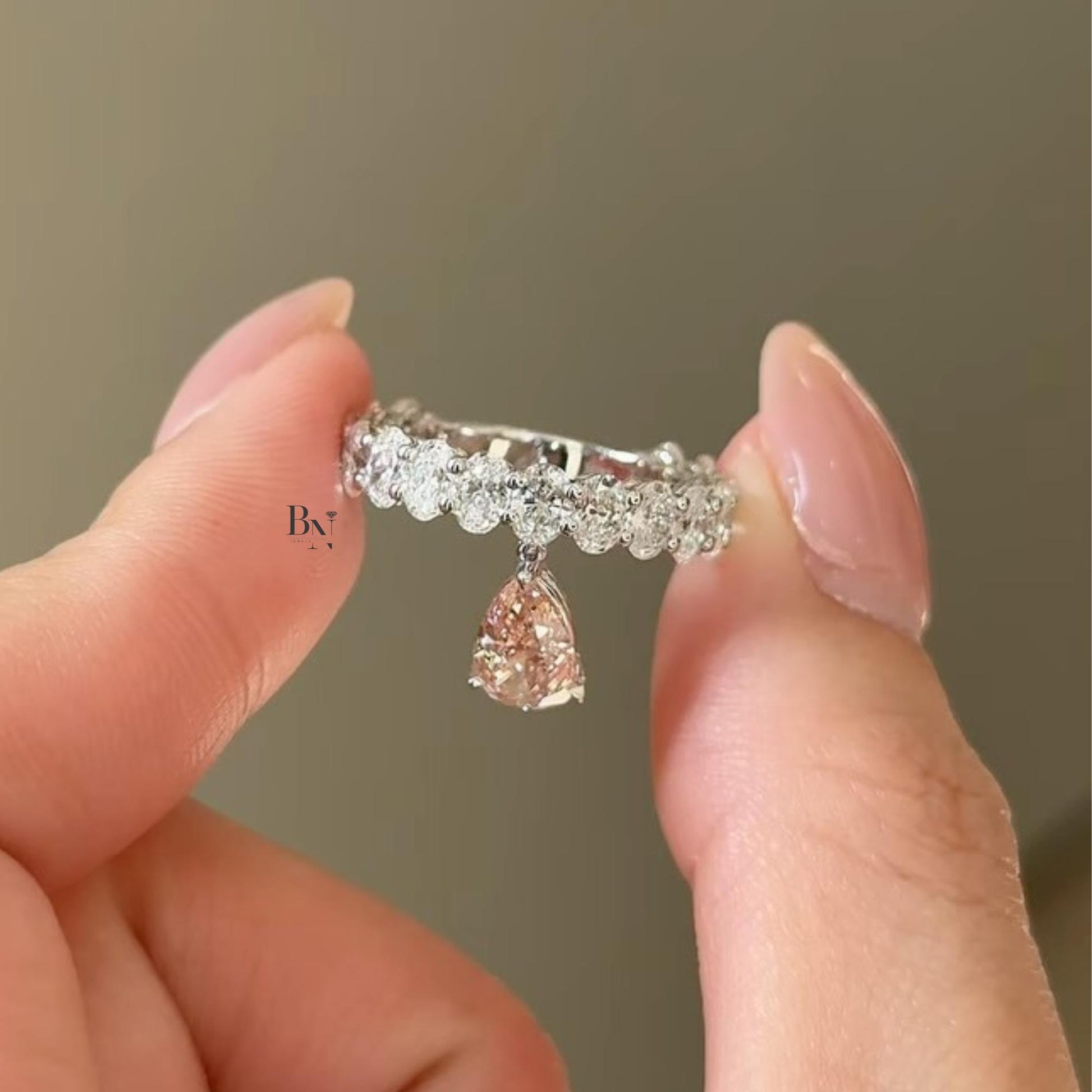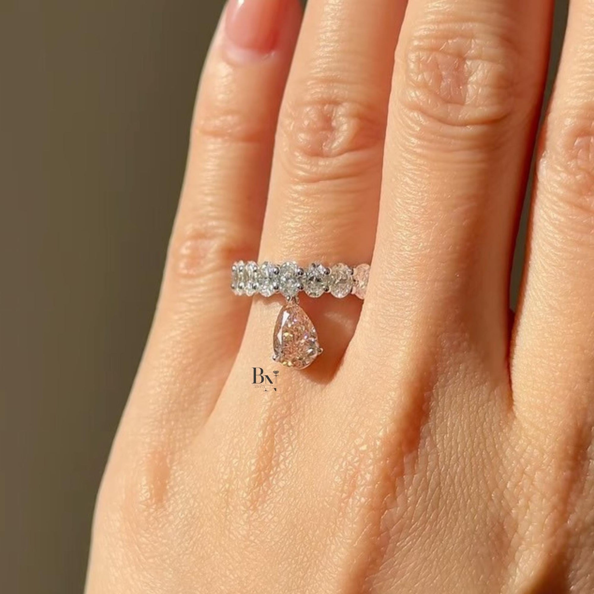 1.00ct Lab Diamond Eternity Band | Dangling Pear Accent Wedding Ring | Floating Diamond Charm | White Gold Luxury