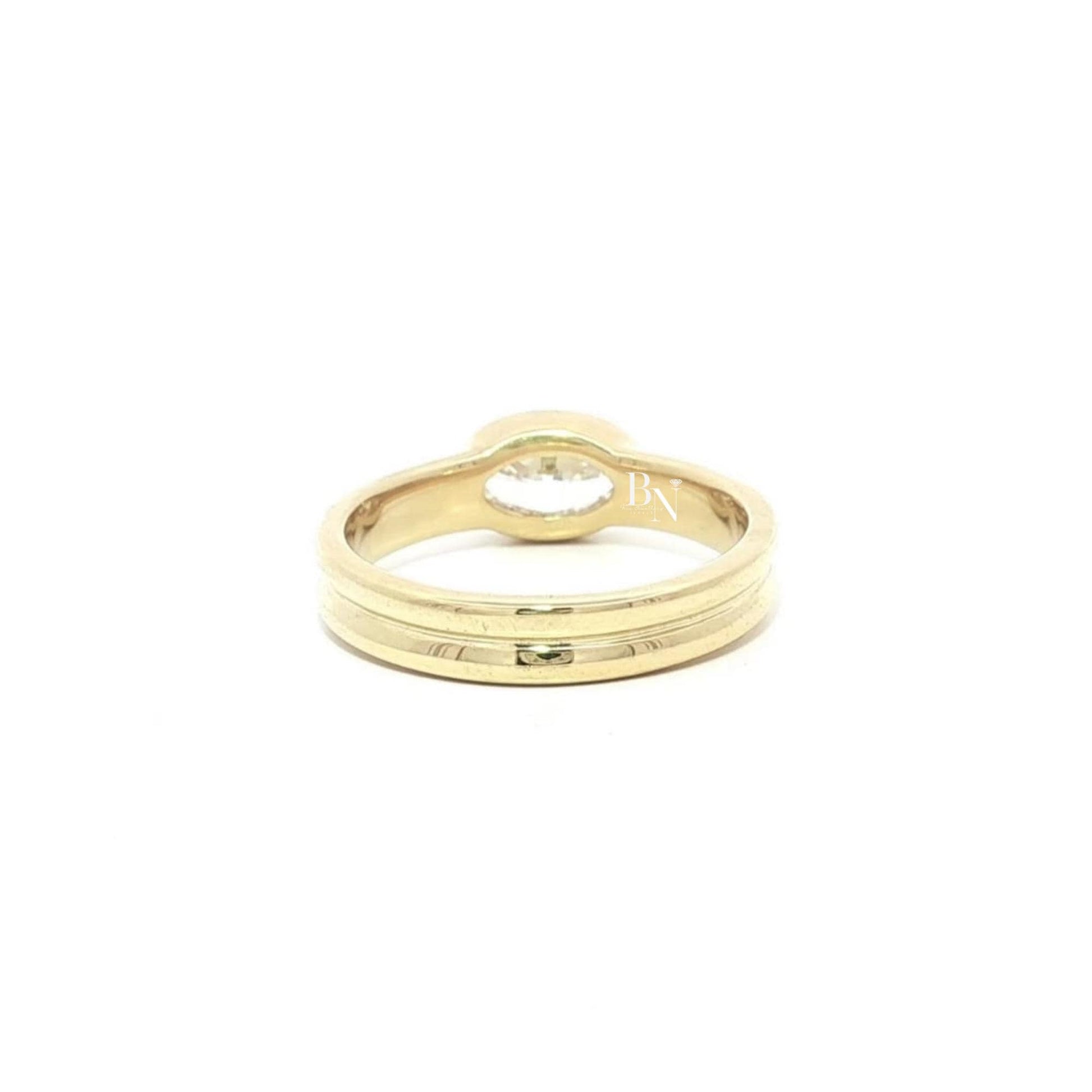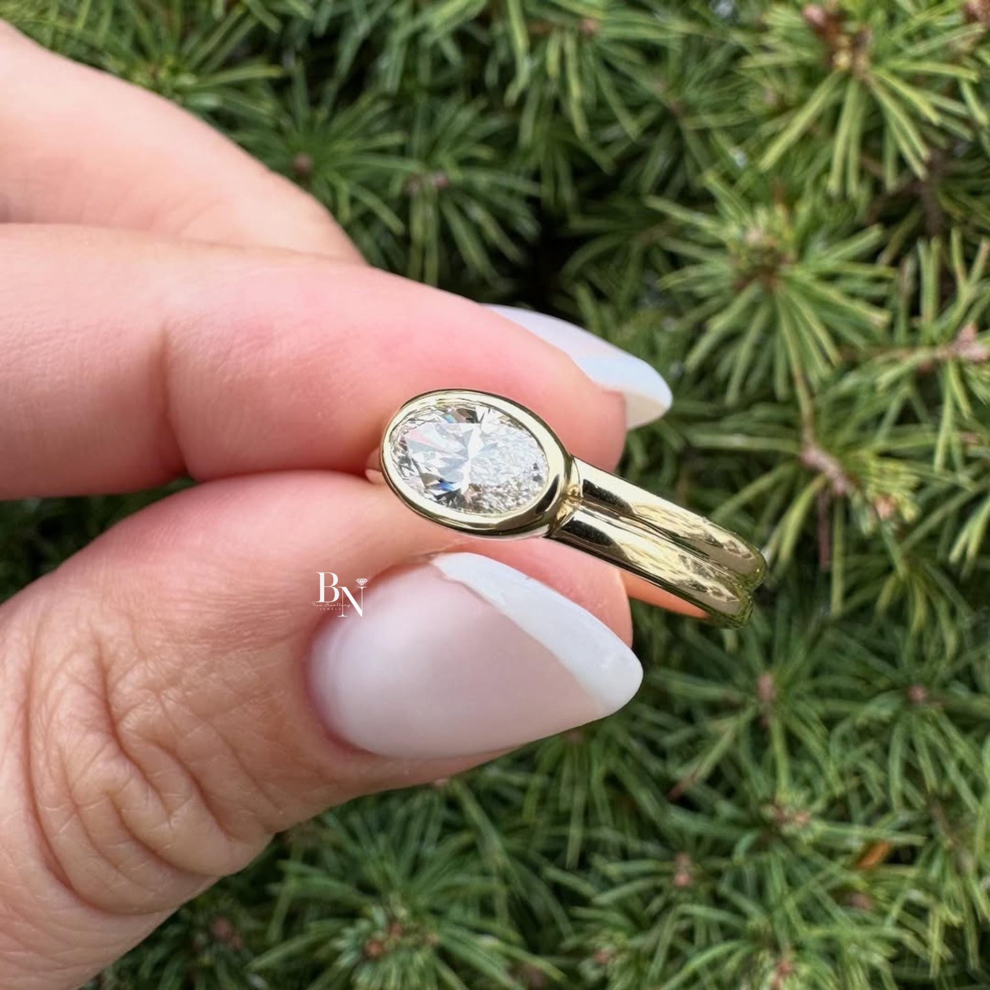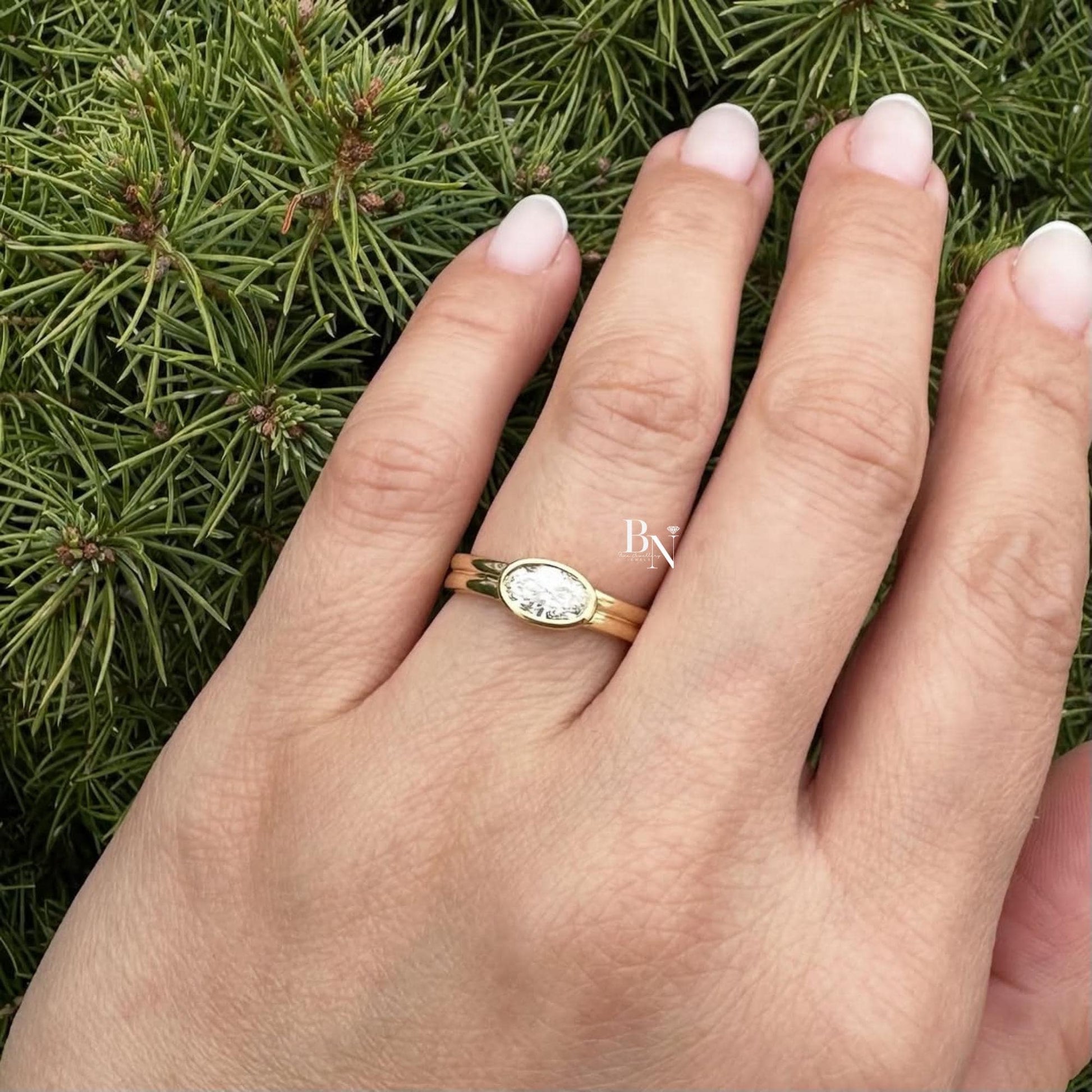 1.00ct Oval Lab Diamond Engagement Ring | East West Full Bezel Double Band 14K Yellow Gold | Minimalist Quiet Luxury Horizontal Solitaire