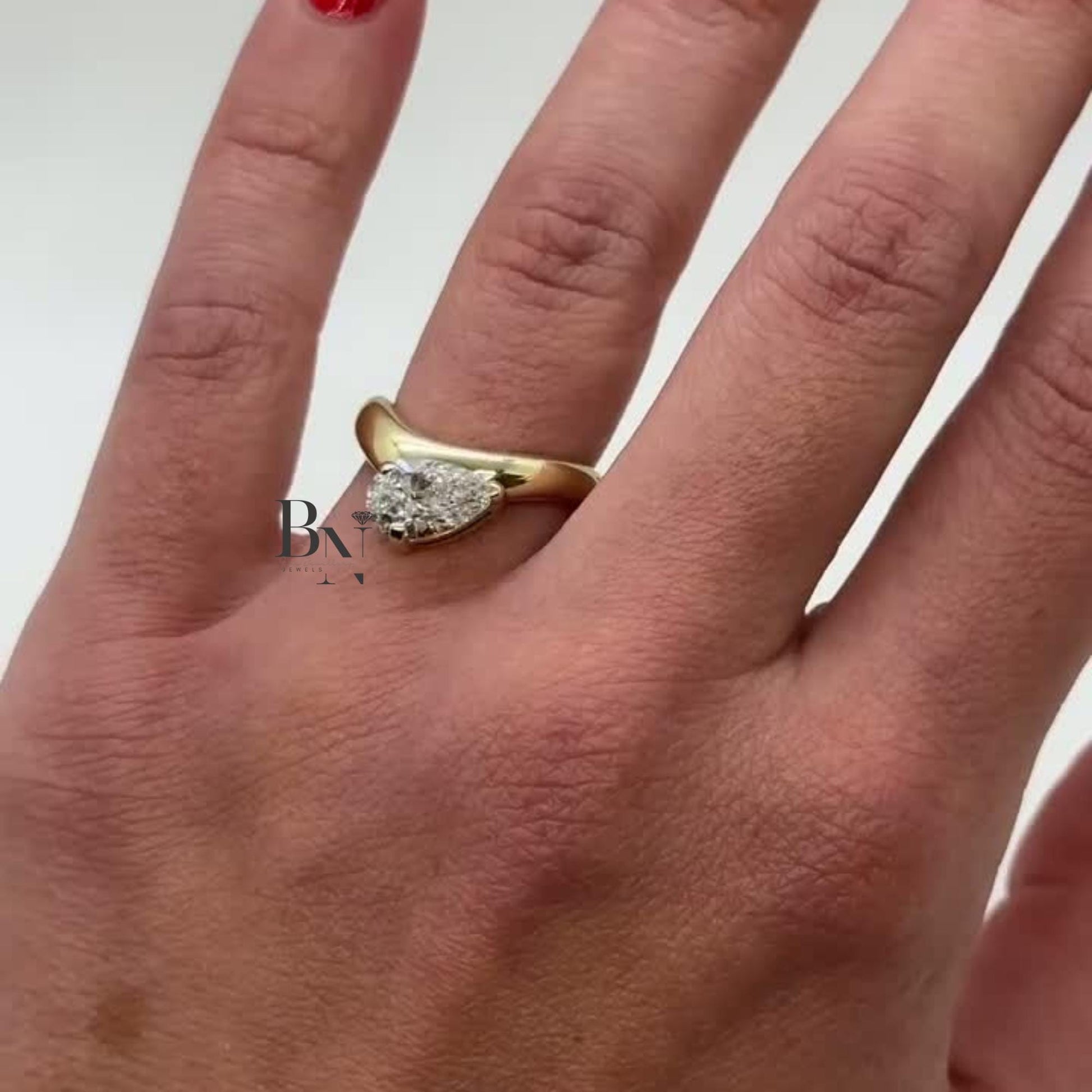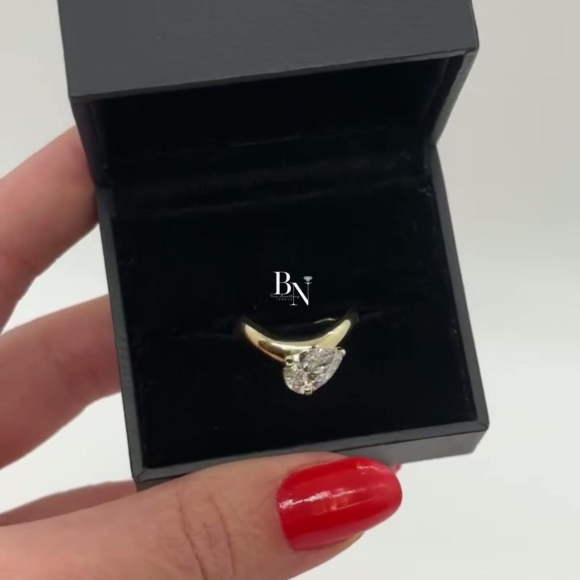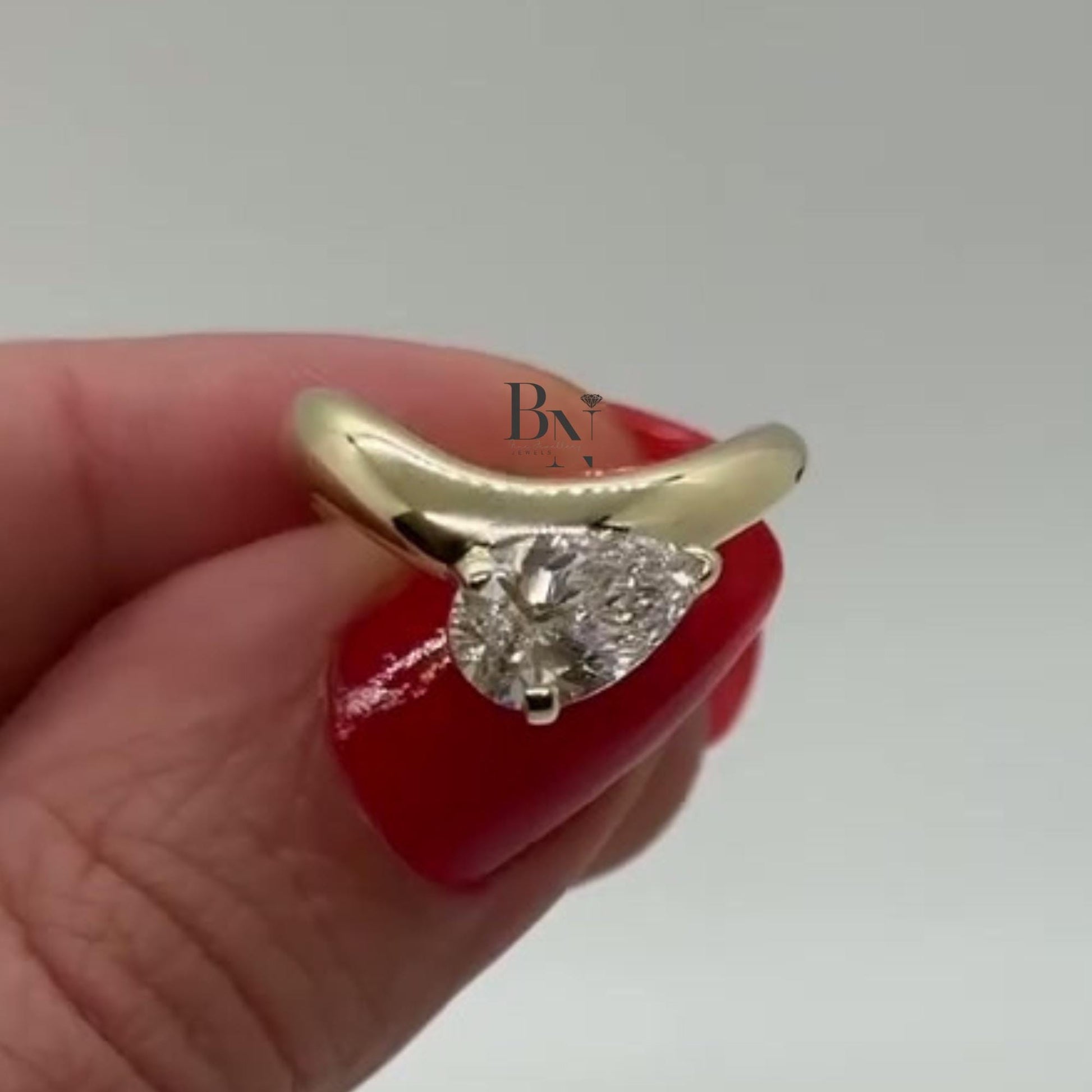 1.00ct Pear Lab Diamond Engagement Ring | Yellow Gold Bypass Solitaire | Bezel Set Unique Modern Bridal Ring | IGI Certified