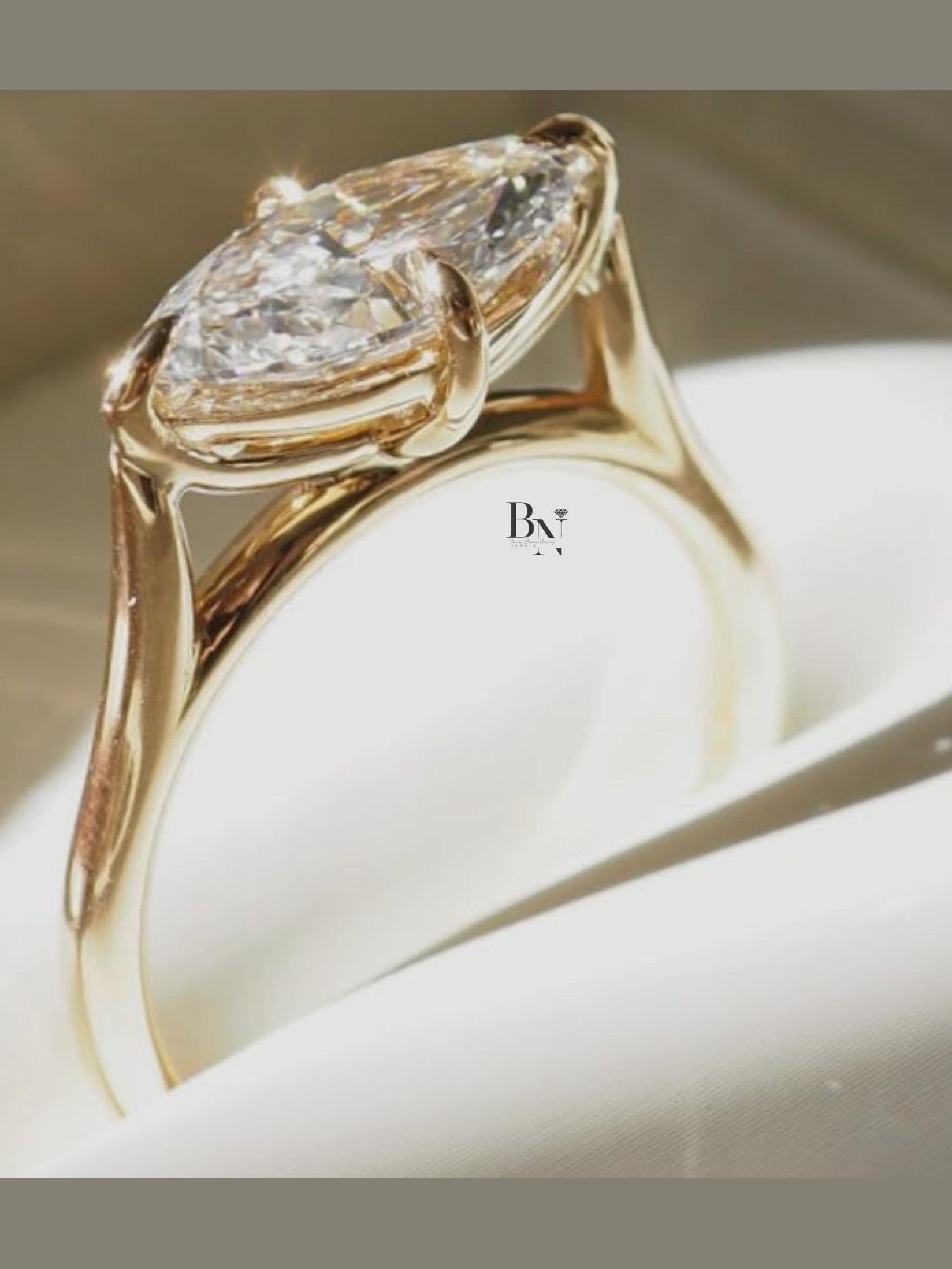 Experience the dramatic elegance of this 1.50ct Marquise Lab Diamond Solitaire Ring, featuring a secure V-Prong Setting that protects the stone's points and an elongated shape that maximizes finger coverage in Solid 14K Yellow Gold. This classic bridal ring is crafted with Type IIa ethical diamonds, ensuring unmatched brilliance and conflict-free status perfect for a timeless proposal. We offer full customization and IGI Certification, guaranteeing an heirloom-quality piece with secure, insured shipping.