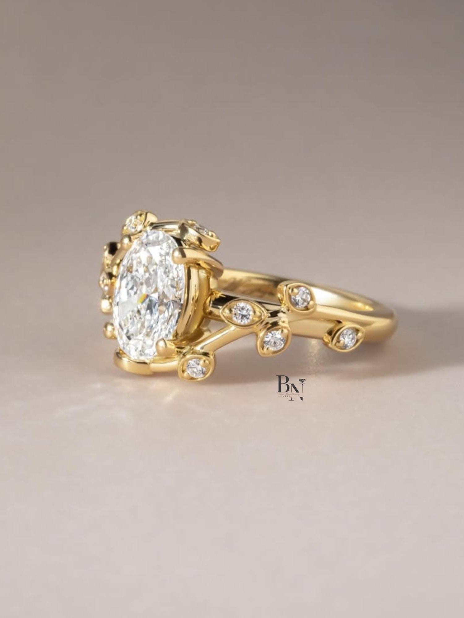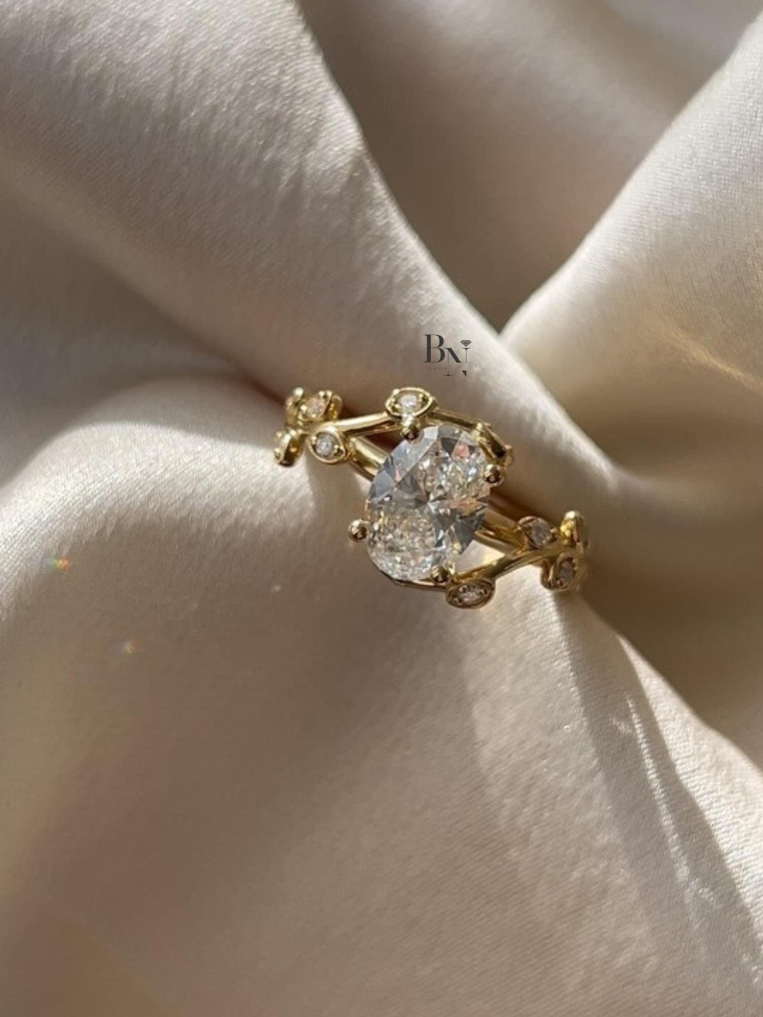 1.50ct Oval Lab Diamond Engagement Ring | Leaf and Vine Solitaire Band | 14K White Gold Dainty Band | IGI Certified | Nature Inspired Band