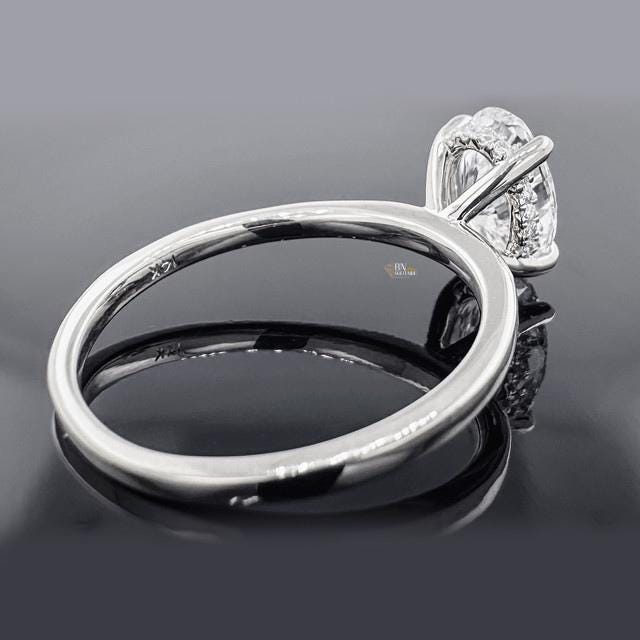This exquisite 1.5ct Oval Lab Grown Diamond ring is the epitome of classic design with a modern secret, appealing to the desire for subtle luxury. The brilliant, elongated Oval Cut maximizes finger coverage and provides an icy, crisp sparkle. The simple, dainty White Gold shank flows up to reveal a sparkling Hidden Halo beneath the stone, adding depth and extra shimmer visible from the side. This IGI-certified piece is a stunning, timeless choice, offering brilliant radiance and an elegant, unforgettable silhouette. 💎Shipped with love from NYC