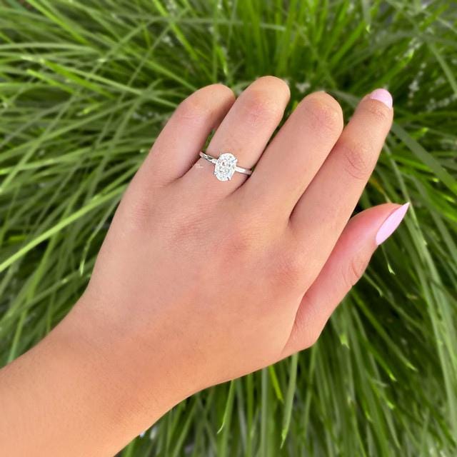 1.5ct Oval Lab Diamond Hidden Halo Solitaire Ring | 14K White Gold Dainty Engagement | Classic Wedding Gift | IGI Certified Elongated