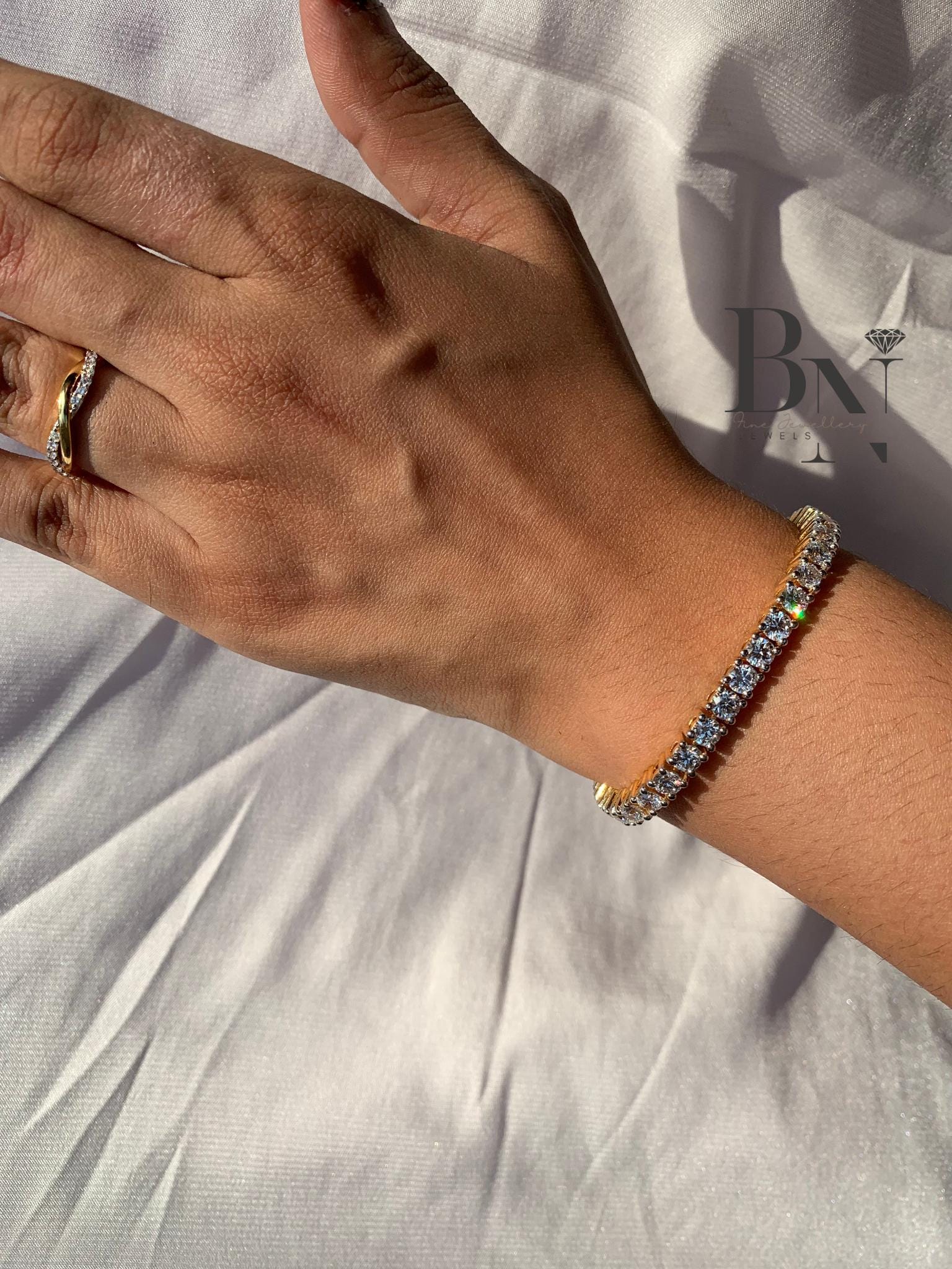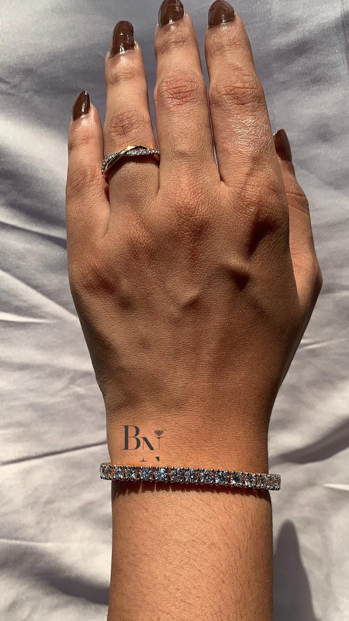Embrace unparalleled elegance with the iconic Diamond Tennis Bracelet, the ultimate heirloom piece. Choose your desired size, from a delicate 2-carat to a show-stopping 10-carat total weight, with each lab diamond IGI certified for its exceptional quality. Every brilliant, round-cut stone is set in a classic 4-prong basket of solid 14k gold, creating a seamless, breathtaking line of fire around your wrist. For your peace of mind, it fastens with a secure box clasp and a fold-over safety latch. This is the definitive gift for a wedding, anniversary, or any of life's most treasured milestones.