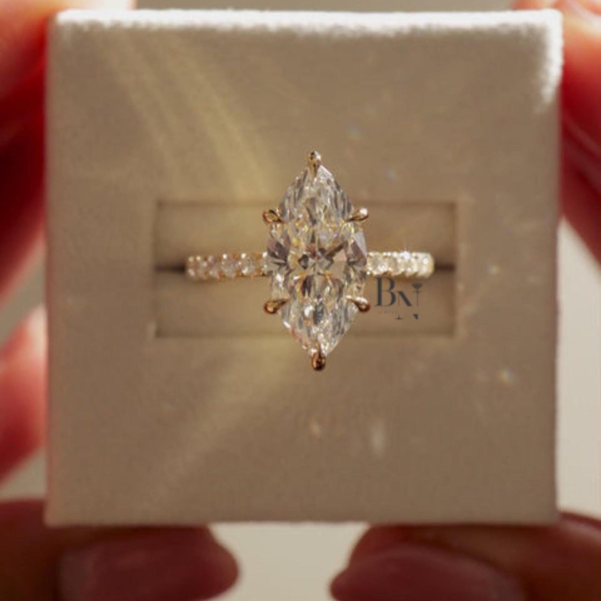 2 Carat Marquise Lab Diamond Ring | Pave Engagement Ring Yellow Gold | Elongated Vintage Wedding Ring | IGI Certified Statement Ring