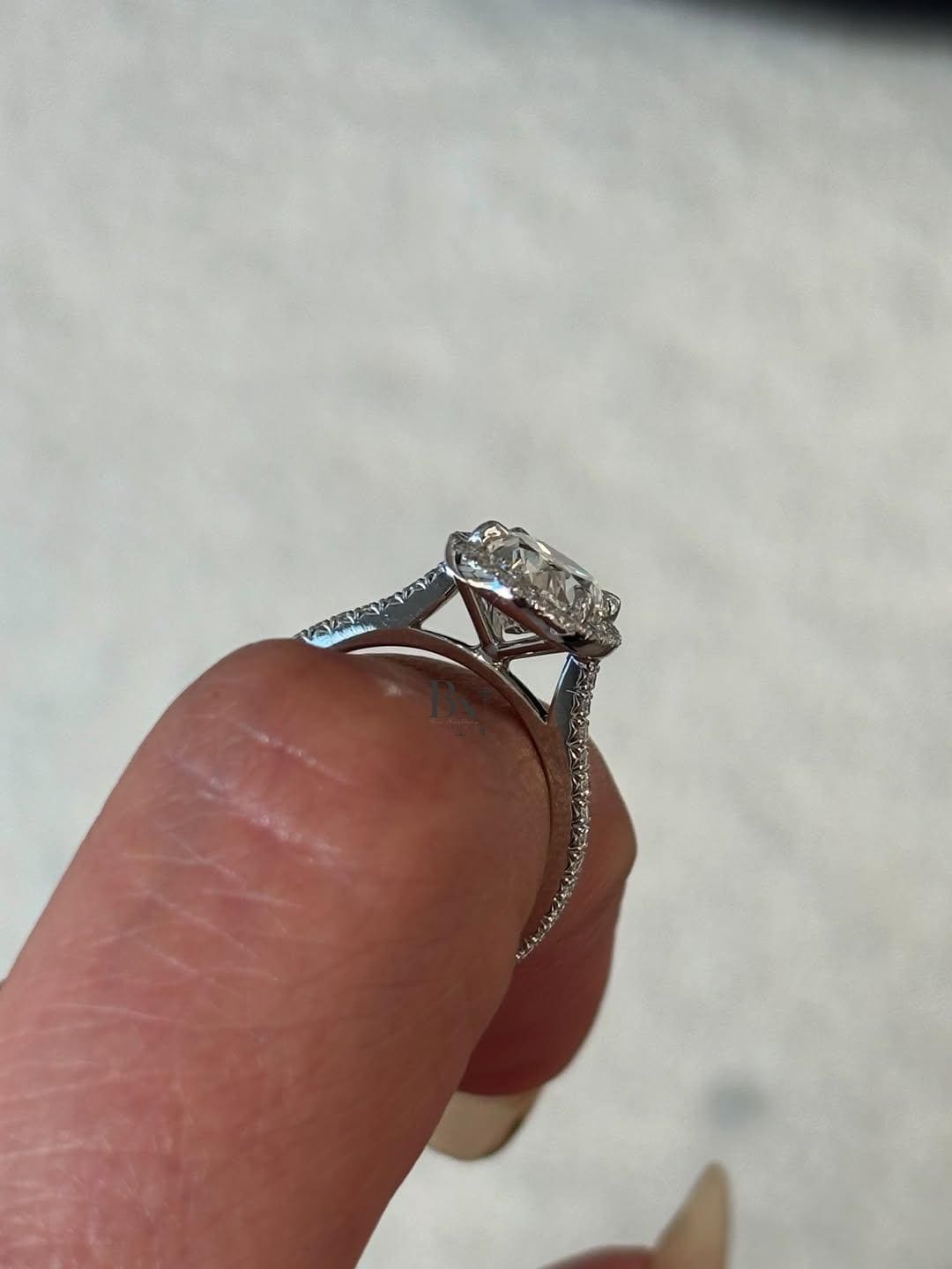 2 Carat Oval Lab Grown Diamond Ring | Halo Engagement Ring | 14K White Gold Pave Band | Luxury Wedding Ring for Women | US Bridal Jewelry