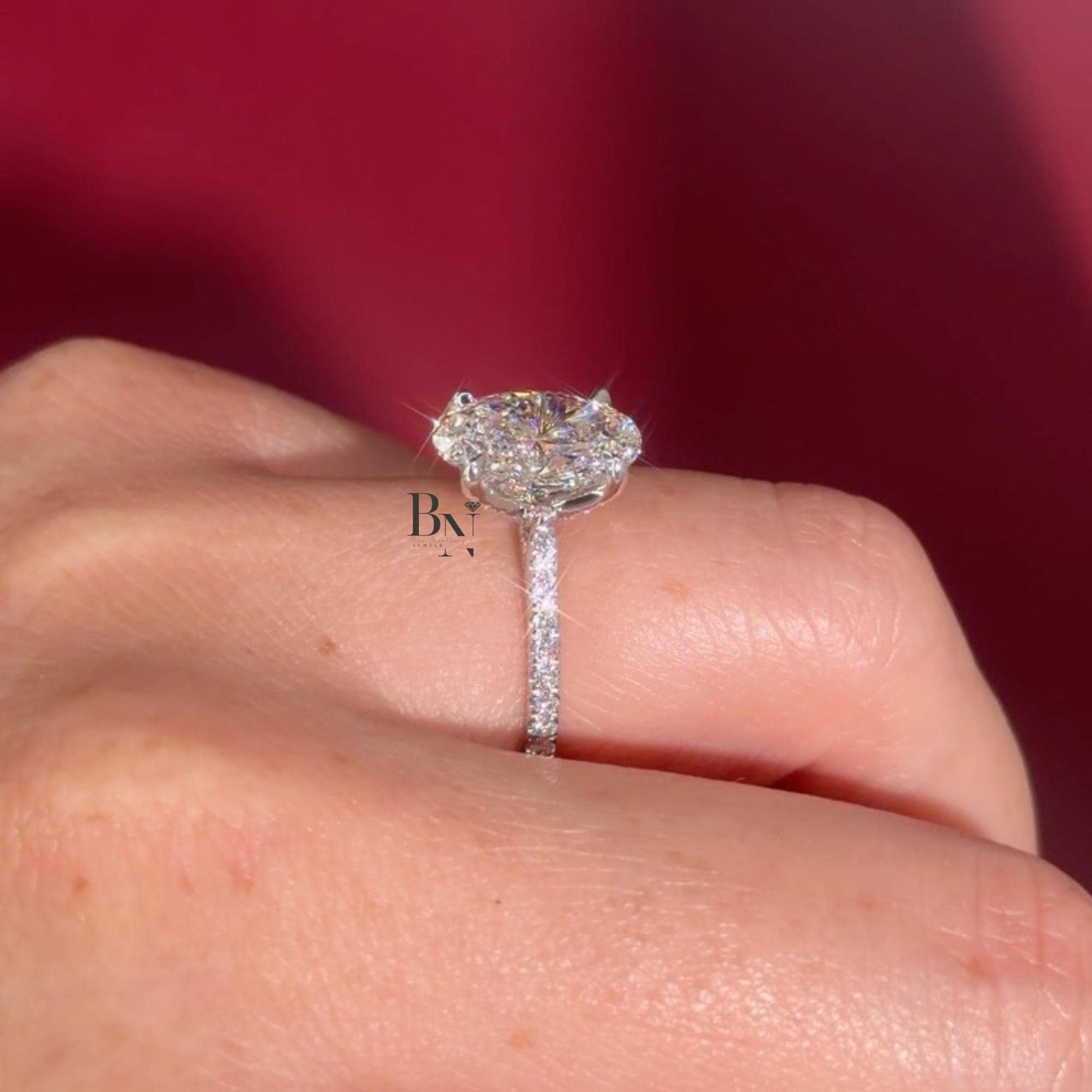3.00 CT Oval Lab Diamond Engagement Ring | Lotus Basket Setting | Pave Band | 14K Yellow Gold Solitaire | IGI Certified | Elongated Oval