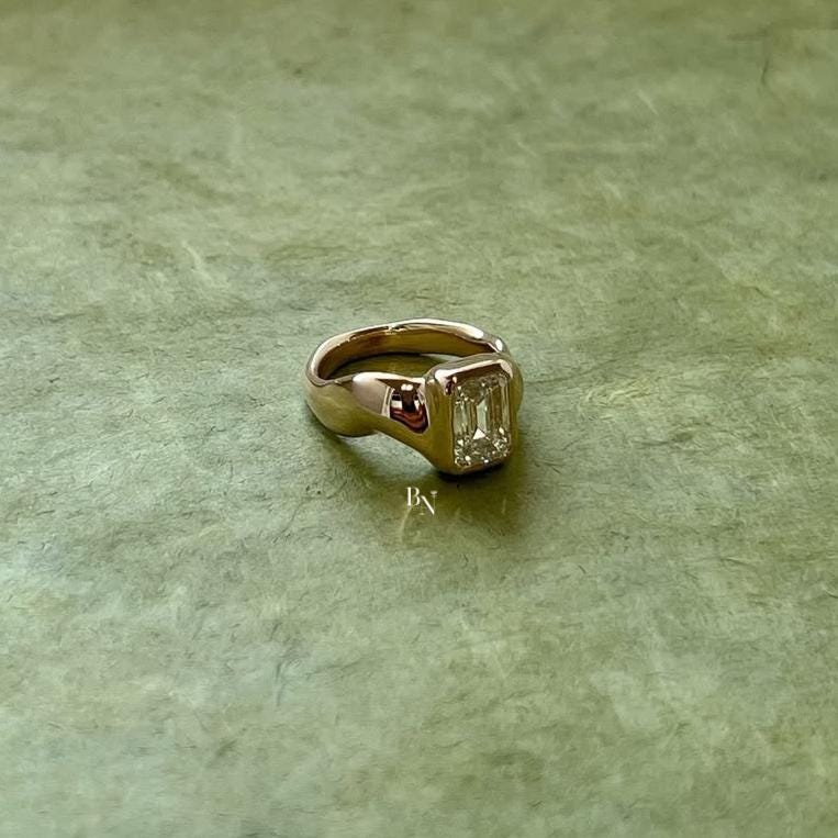 3.00ct Emerald Cut Lab Diamond Signet Ring | Bezel Set Cigar Band | IGI Certified Statement Ring | Modern Yellow Gold Engagement